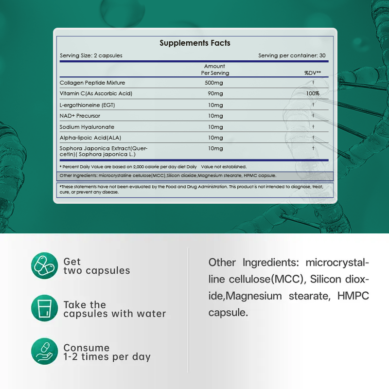 Biodepot NAD+ Supplement 7-in-1 Formula with Collagen L-ergothioneine & Vitamin C