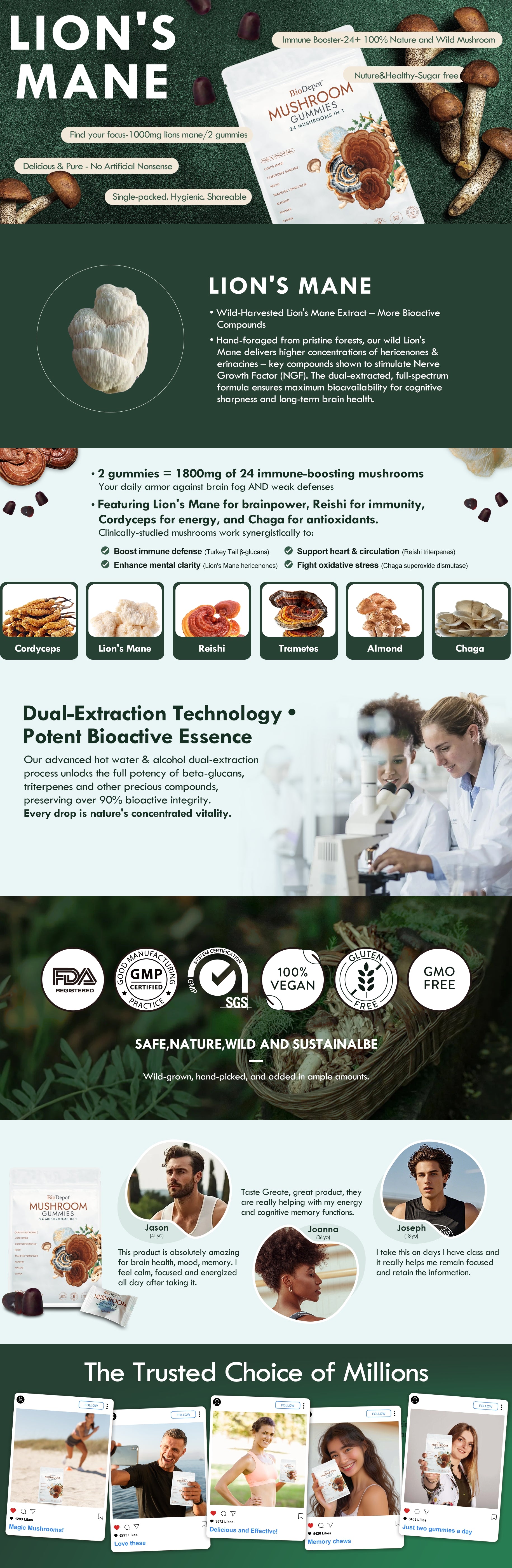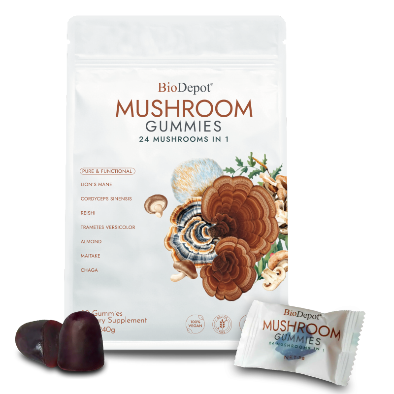 Biodepot 24-in-1 Mushroom Gummies for Immunity & Brain Focus
